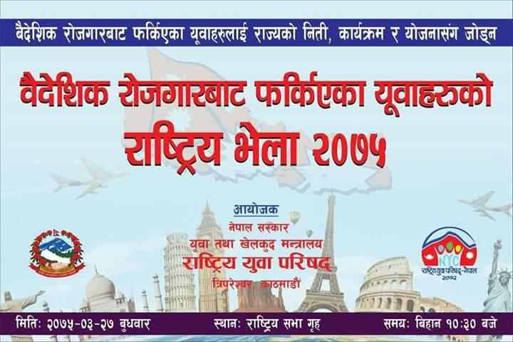 वैदेशिक रोजगारबाट फर्केका युवाशक्तिहरुको संगठित संस्था गठनलाई मध्य नजर गर्दै राष्ट्रिय भेला हुन लागिएको राष्ट्रिय युवा परिषद्ले जनाएकोछ ।