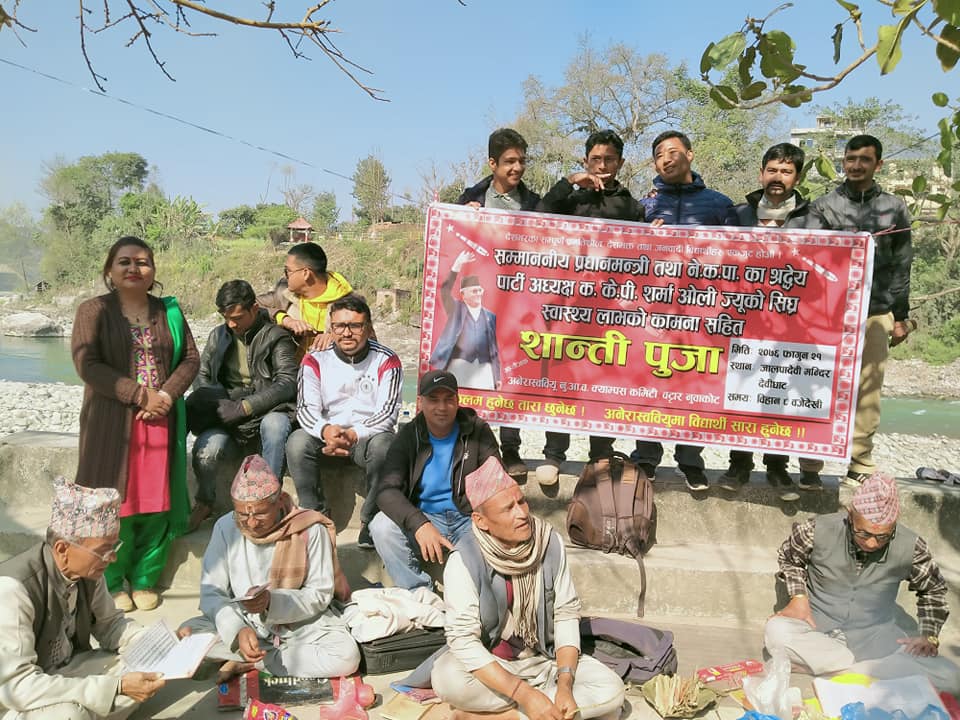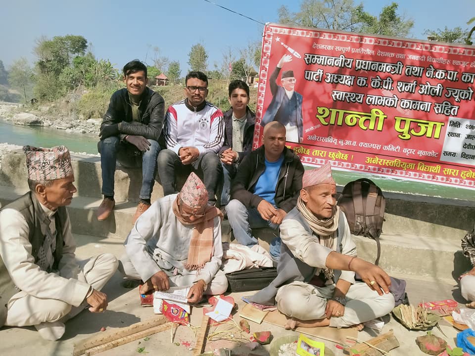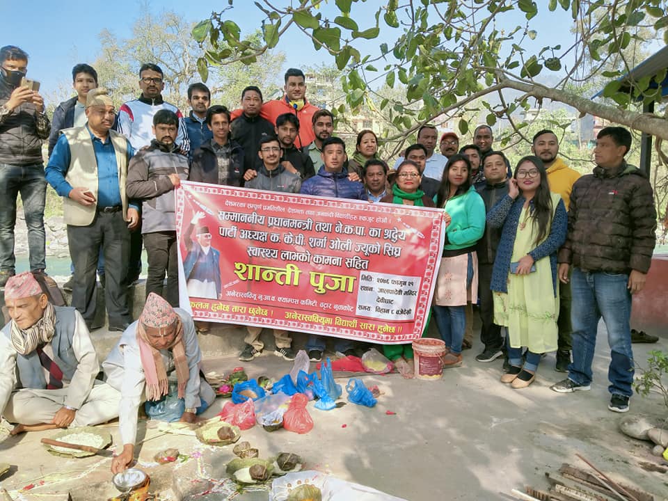 विदुर – प्रधानमन्त्री केपी शर्मा ओलीको स्वास्थ्यलाभको कामना गर्दै नुवाकोटको विदुर नगरपालिका वडा नम्बर ५ मा रहेको जालपादेवी मन्दिरमा ‘शान्ति पूजा’ गरिएको छ ।