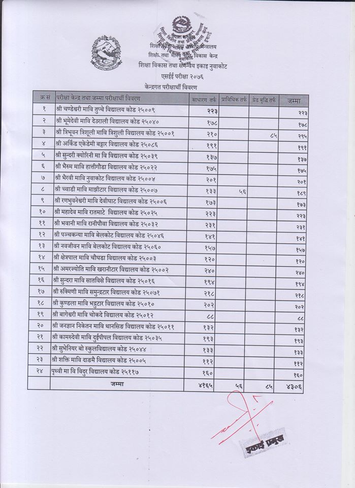विदुर – भोलि चैत ६ गतेबाट सुरु हुने यस वर्षको एसइइ परीक्षामा नुवाकोटबाट ४ हजार ३ सय ६ जना परिक्षार्थी सहभागी हुँदैछ । नियमिततर्फ ४ हजार १ सय ६५, ग्रेड वृद्धितर्फ ८५ र प्राविधिकतर्फ ५६ जना परिक्षार्थीले जनाले परीक्षा दिँदै छन् ।