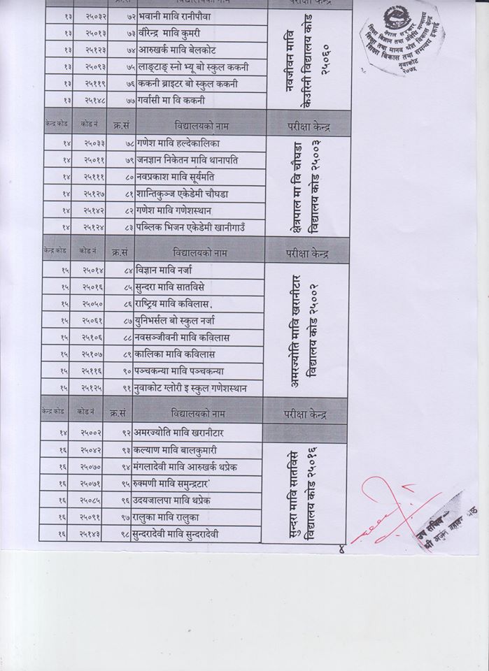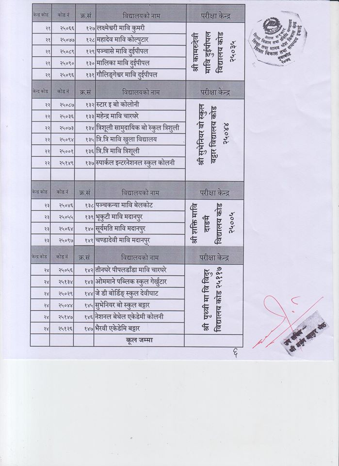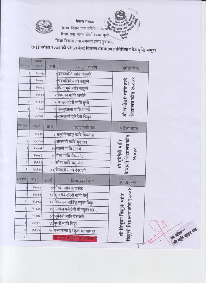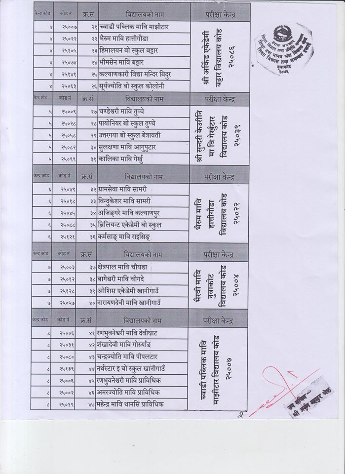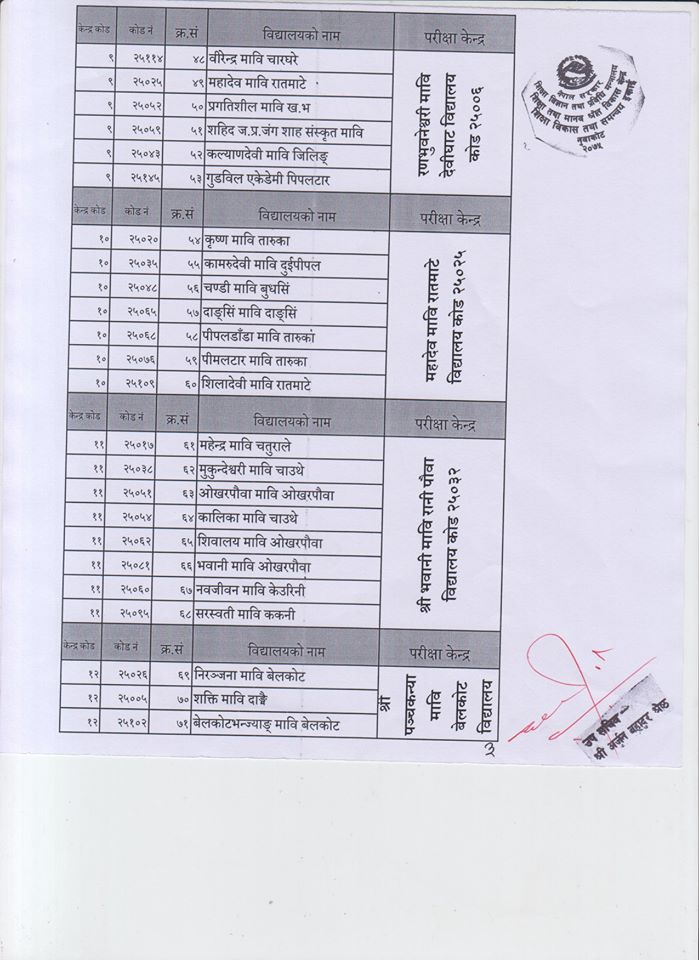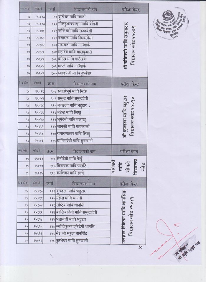 एसइइ परीक्षा केन्द्रका पूर्ण नामावली