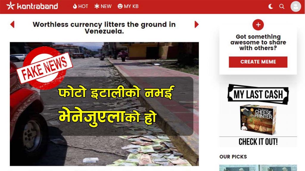 एघार महिना अगाडी पोस्ट भएको यो फोटो अहिले इटालीमा भएको विषम परिस्थितिमा मानिसहरुले पैसा बाटोमा फलेको भनेर सामाजिक संजालमा पोस्ट भइरहेको छ ।