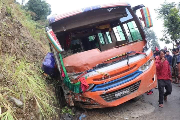 आज (सोमबार) बिहान किस्पाङको भाल्चेबाट काठमाडौंका लागि छुटेको केरुङ यातायातको बा ४ ख ५७६२ नं को बस भुमेस्थानमा दुर्घटना भएको हो । बस अनियन्त्रित भई भित्तामा बसको ब्रेक फेल भएर दुर्घटना हुन पुगेको थियो ।