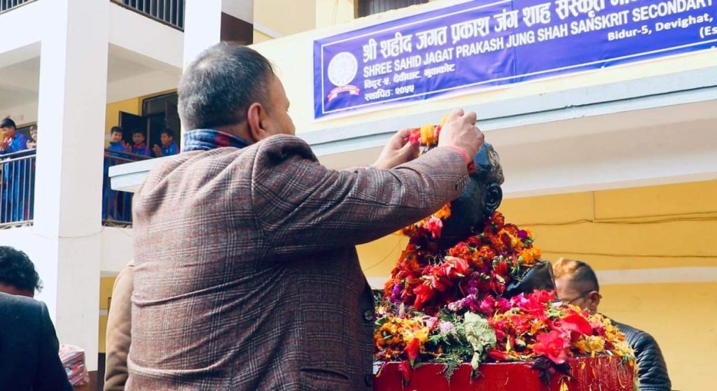 विदुर नगरपालिका-५ मा रहेको शहिद जगतप्रकाशजंग शाह संस्कृत माध्यामिक विद्यालयको प्राङ्गणमै रहेको प्रतिमा नुवाकोटका सभापति एवम् सांसद रमेशकुमार महत, सचिव श्रीराम श्रेष्ठलगायतले माल्यापर्ण गरेका थिए ।