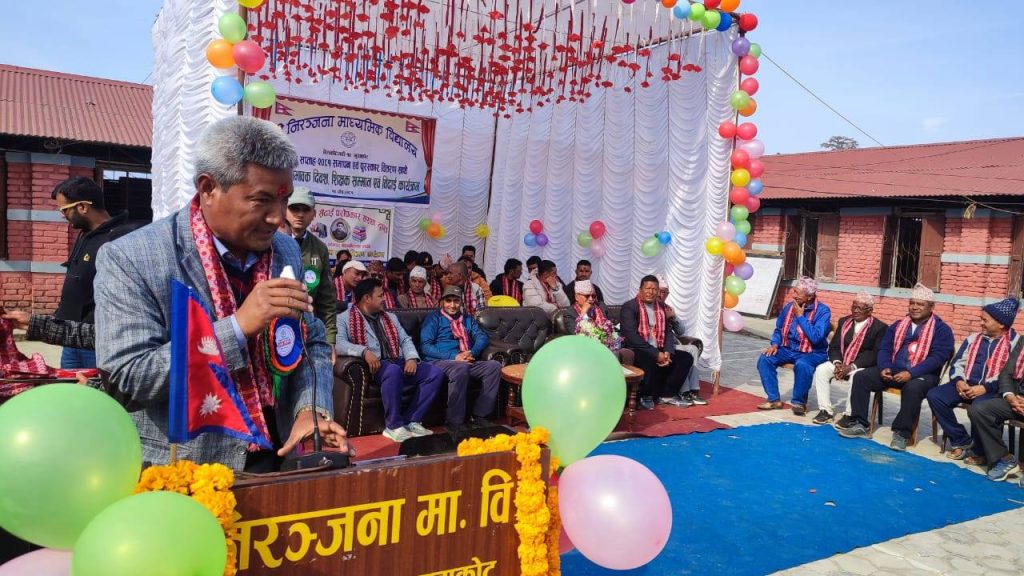 निरञ्जना माध्यमिक विद्यालयको अभिभावक दिवस उद्घाटन गर्दै बेलकोटगढी नगरपालिकाका प्रमुख जगतबहादुर गुरुङ