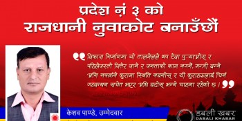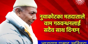 विदुर/यसपटकको निर्वाचनमा आफ्नो पक्षको कर्मचारी खटाउने सेटिङ गरिरहेका नुवाकोटका प्रमुख दलका नेताहरूलाई निर्वाचन आयोगले नराम्रोसँग झट्का दिएको छ । तोकिएको...